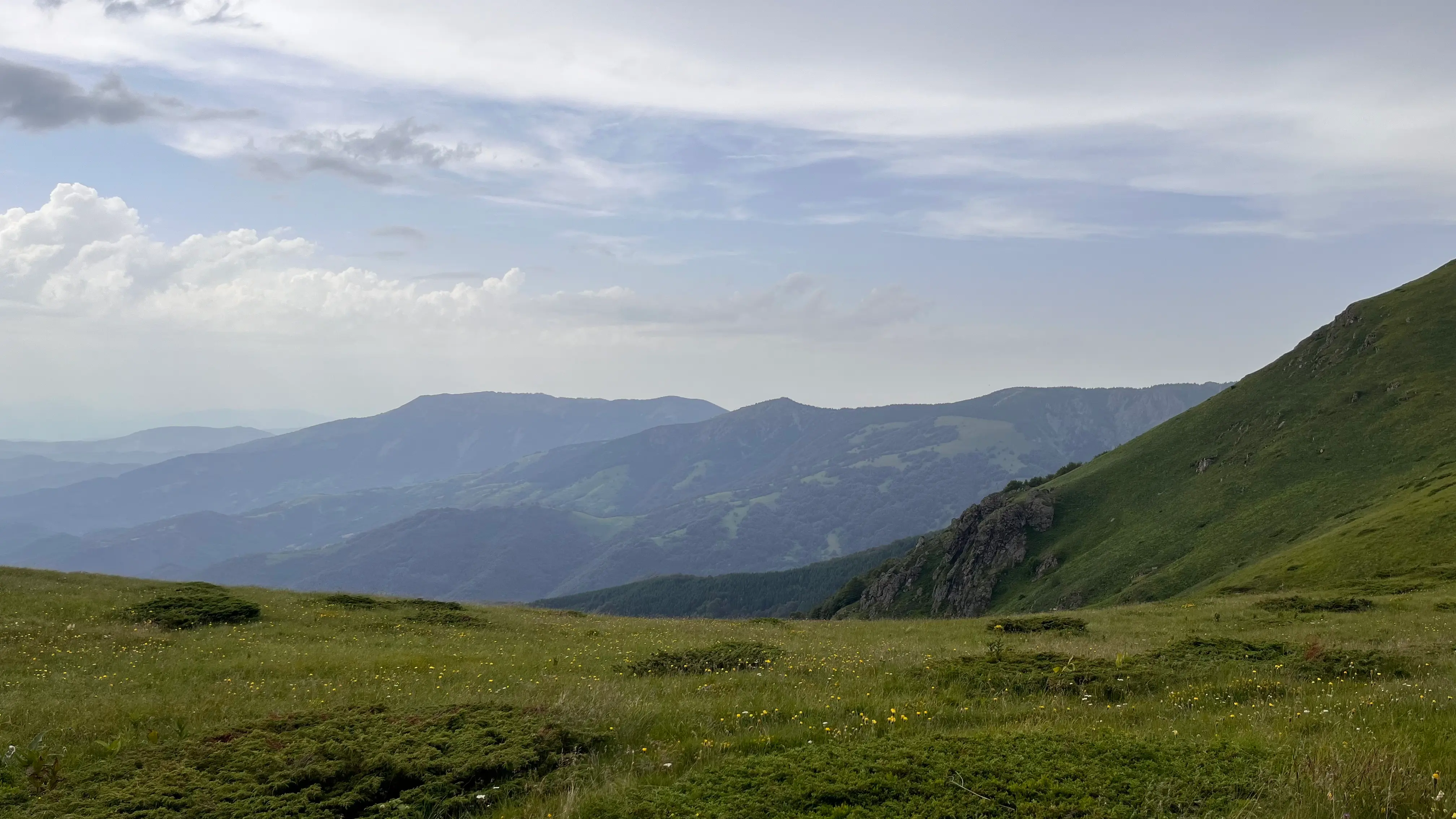 В хайках нередко бывает: то идёшь по красоте, то просто по дороге. Но здесь всё иначе — пейзажи не отпускают ни на минуту. Вокруг постоянно открываются виды: зелёные склоны, горы, за ними ещё горы, и всё это утопает в зелени и просторе. И так до самой вершины Миджор!